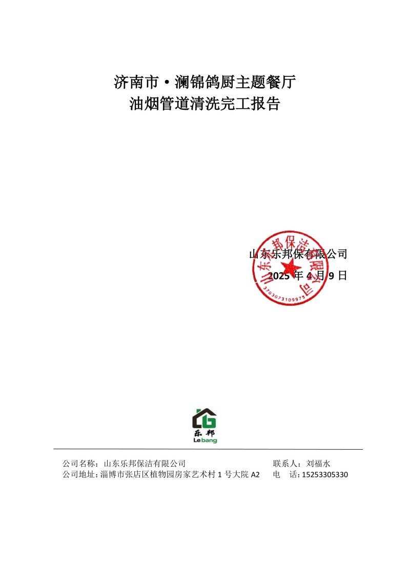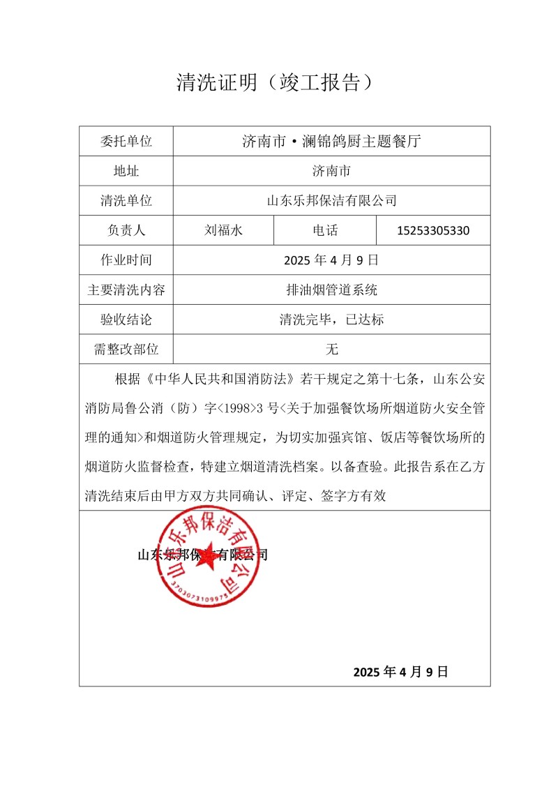 濟南市·瀾錦鴿廚主題餐廳清洗報告25.4.9