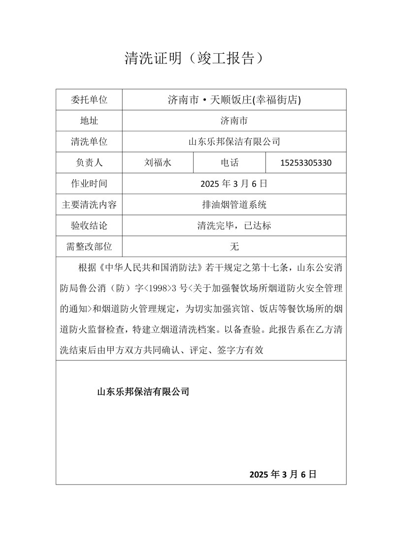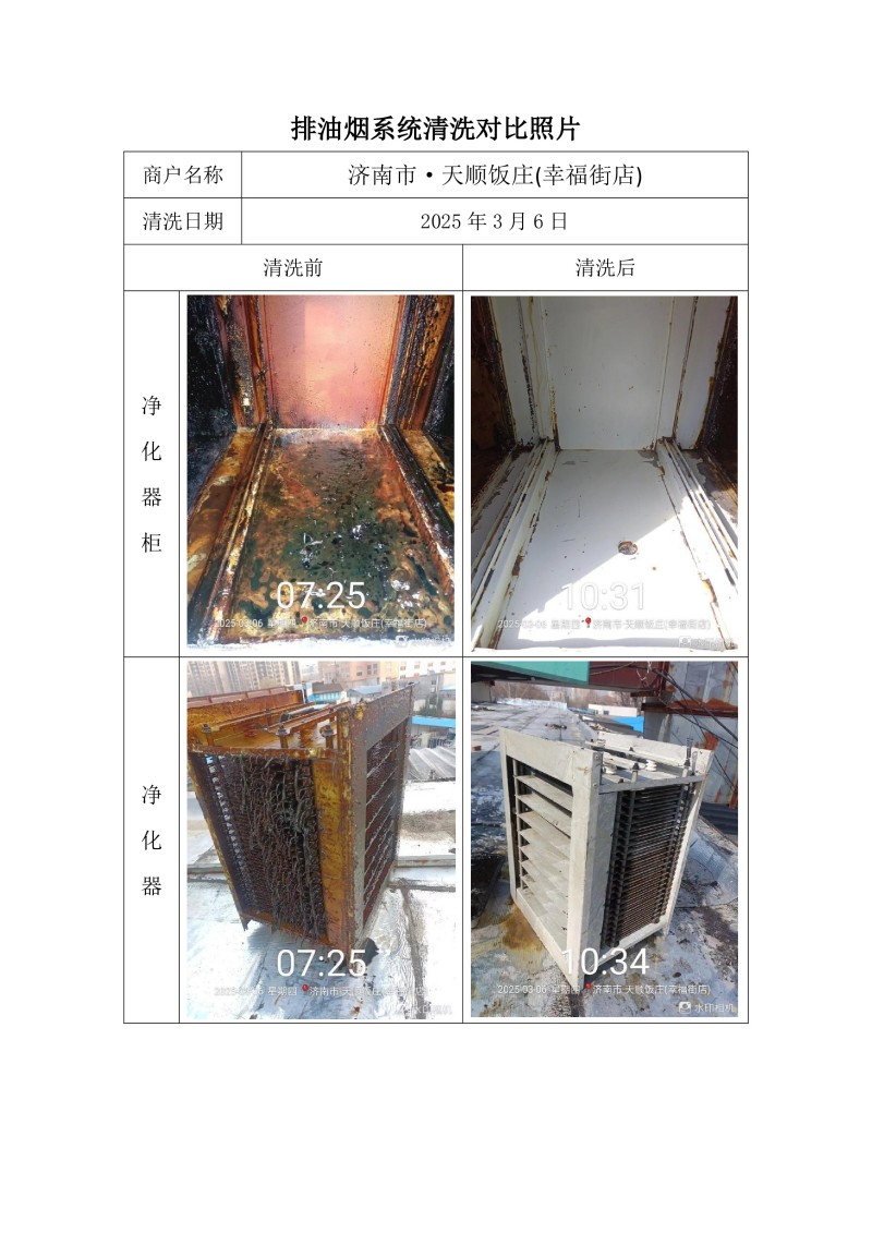 濟(jì)南市·天順飯莊(幸福街店)清洗報告25.3.6