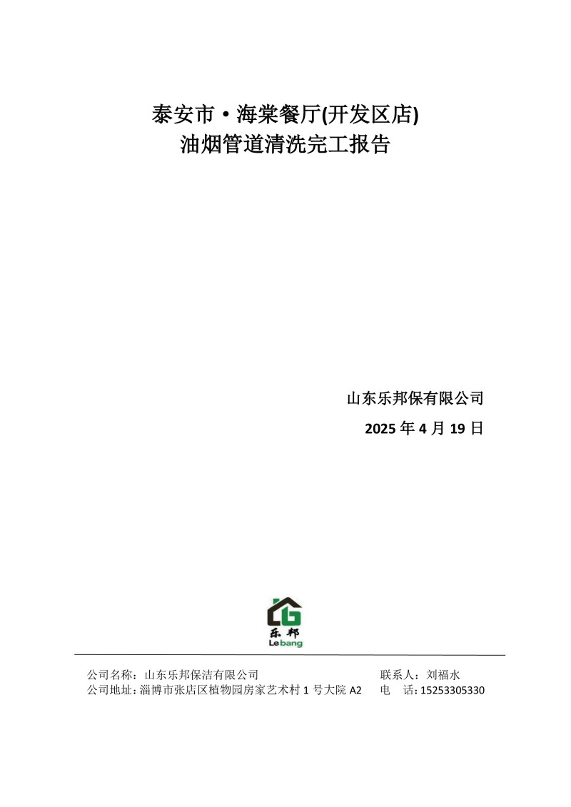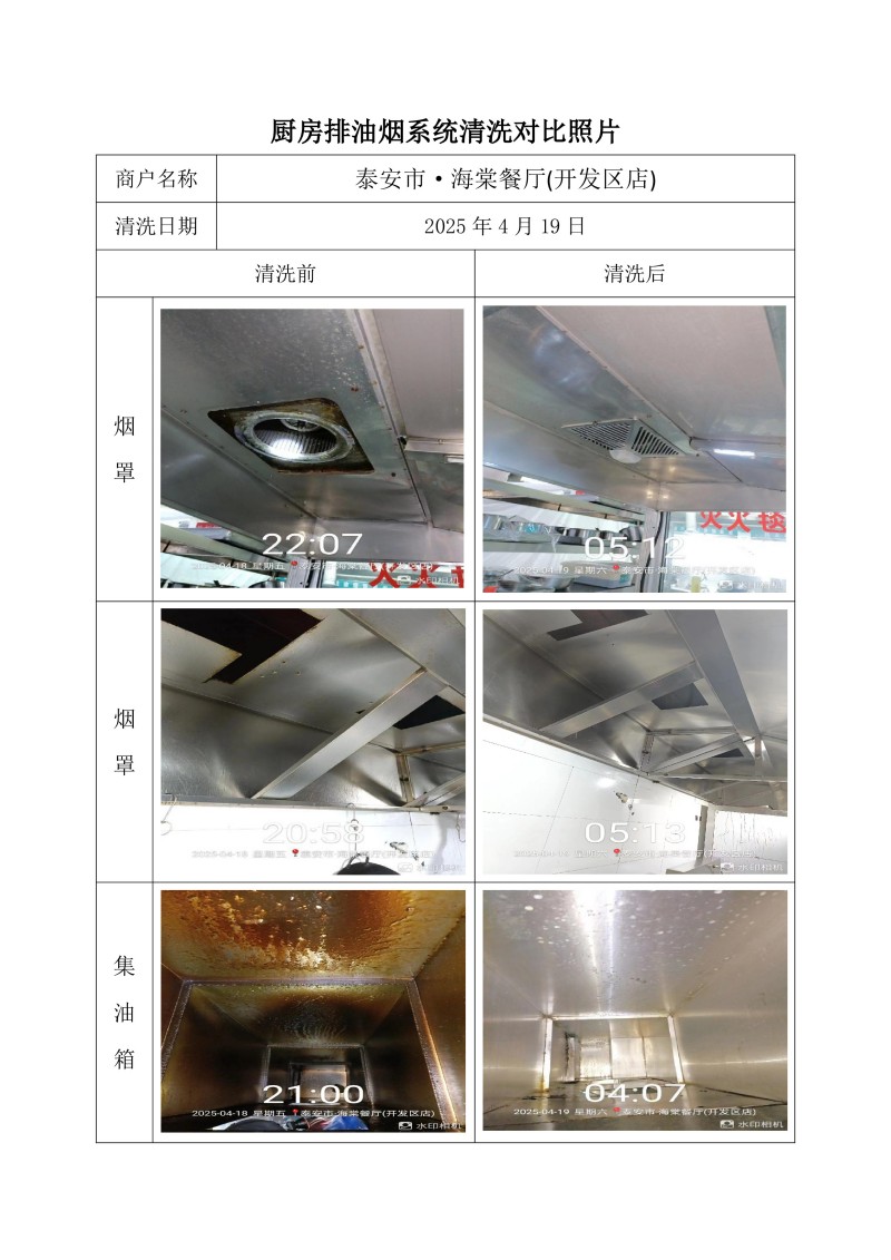 泰安市·海棠餐廳(開發區店)清洗報告25.4.19