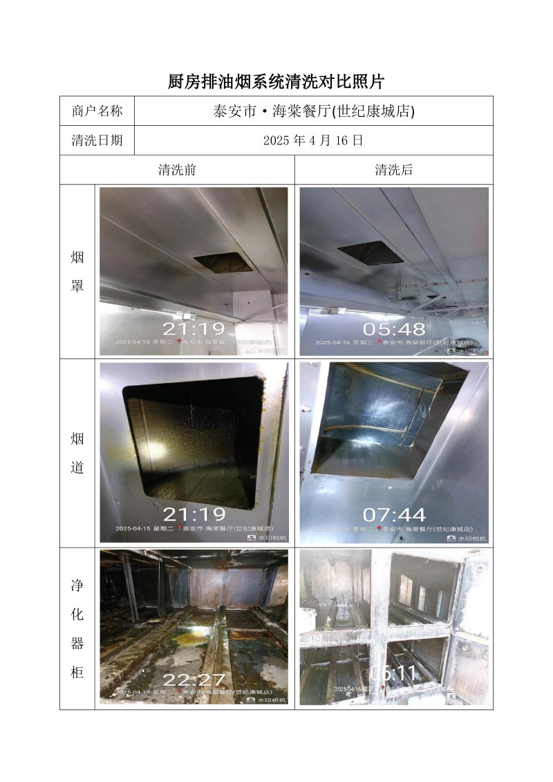 泰安市·海棠餐廳(開發區店)清洗報告25.4.19