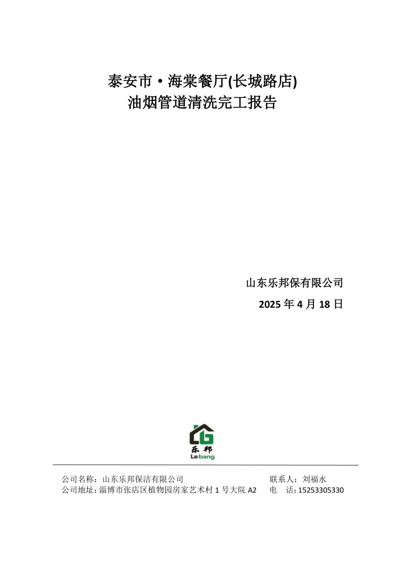 泰安市·海棠餐廳(長城路店)清洗報告25.4.18