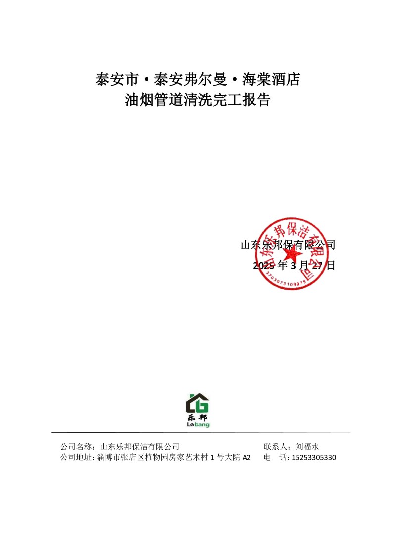 泰安市·泰安弗爾曼·海棠酒店清洗報(bào)告25.3.27