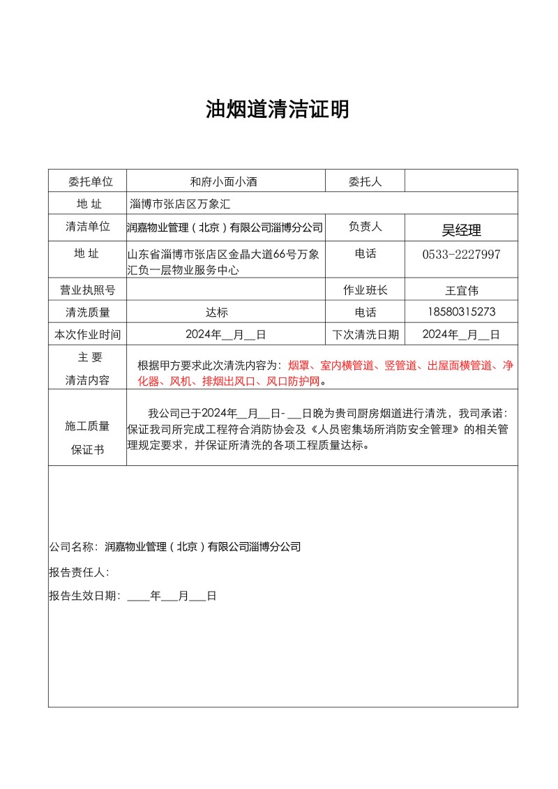 萬象匯和府小面小酒清洗報告25.1.5