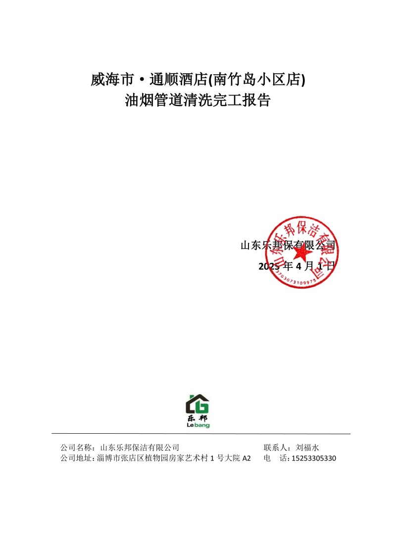 威海市·通順酒店(南竹島小區店)清洗報告25.4.1