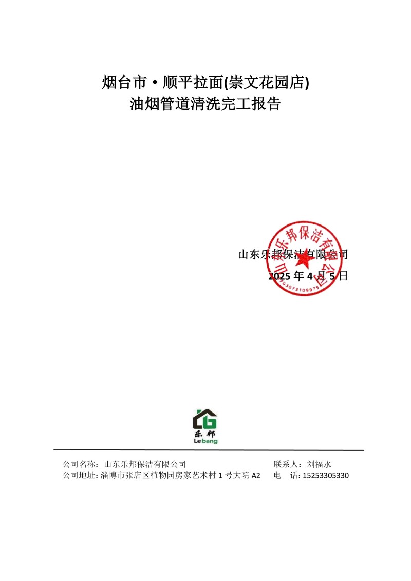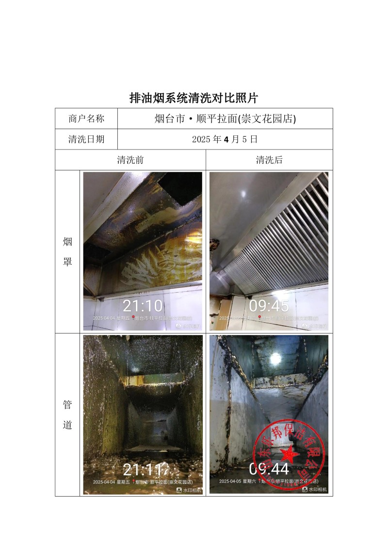 煙臺(tái)市·順平拉面(崇文花園店)清洗報(bào)告25.4.5