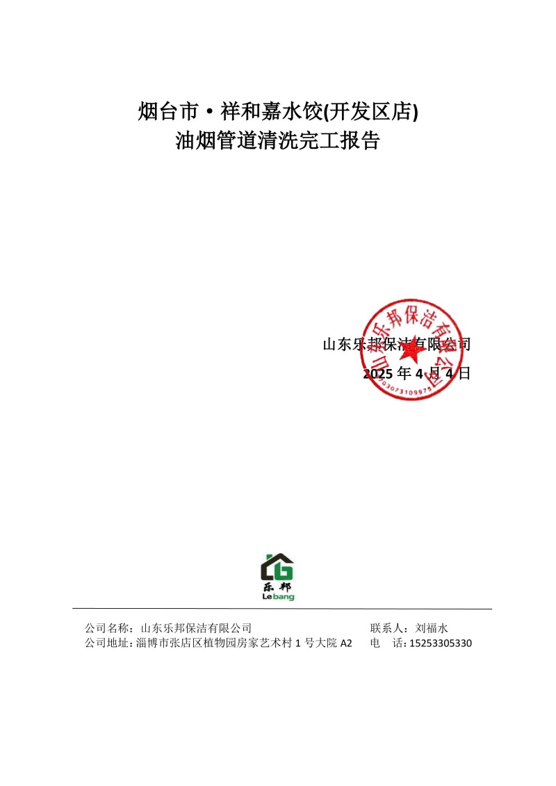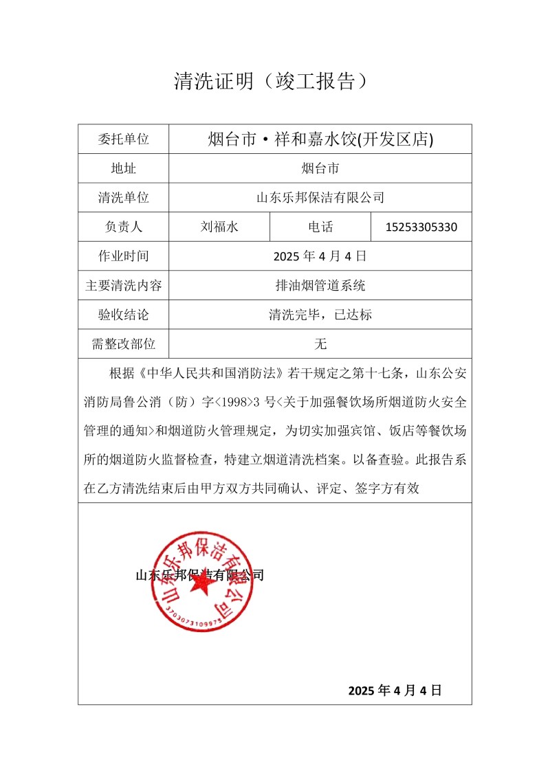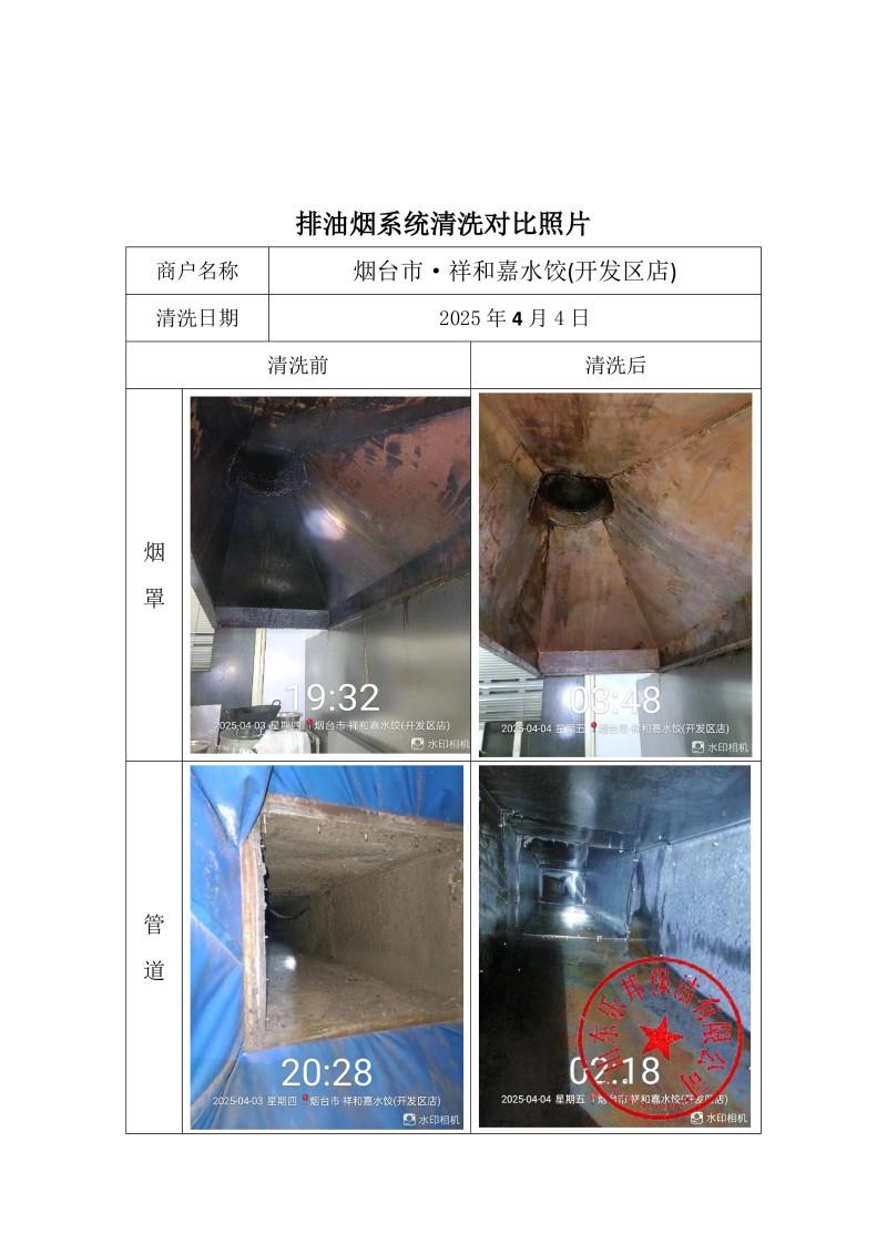 煙臺(tái)市·祥和嘉水餃(開發(fā)區(qū)店)清洗報(bào)告25.4.4
