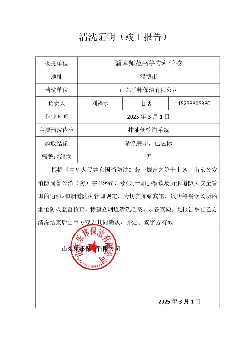 淄博市·阿喆私房菜(西五路店)清洗報告25.3.27