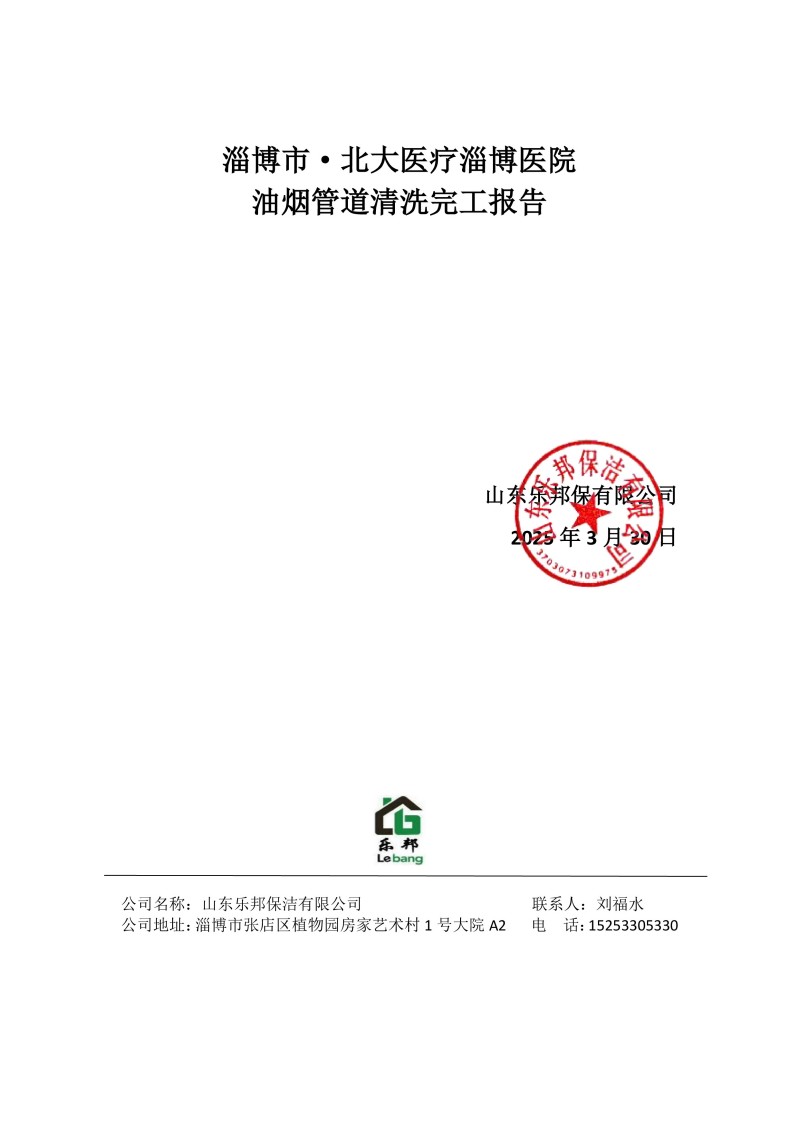 淄博市·北大醫(yī)療淄博醫(yī)院清洗報(bào)告25.3.30