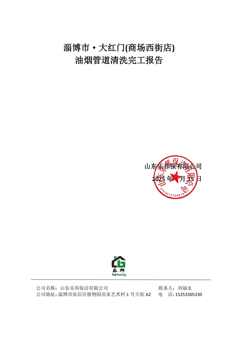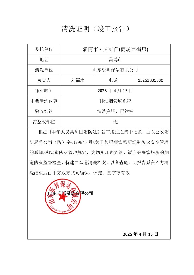 淄博市·大紅門(mén)(商場(chǎng)西街店)清洗報(bào)告25.4.14