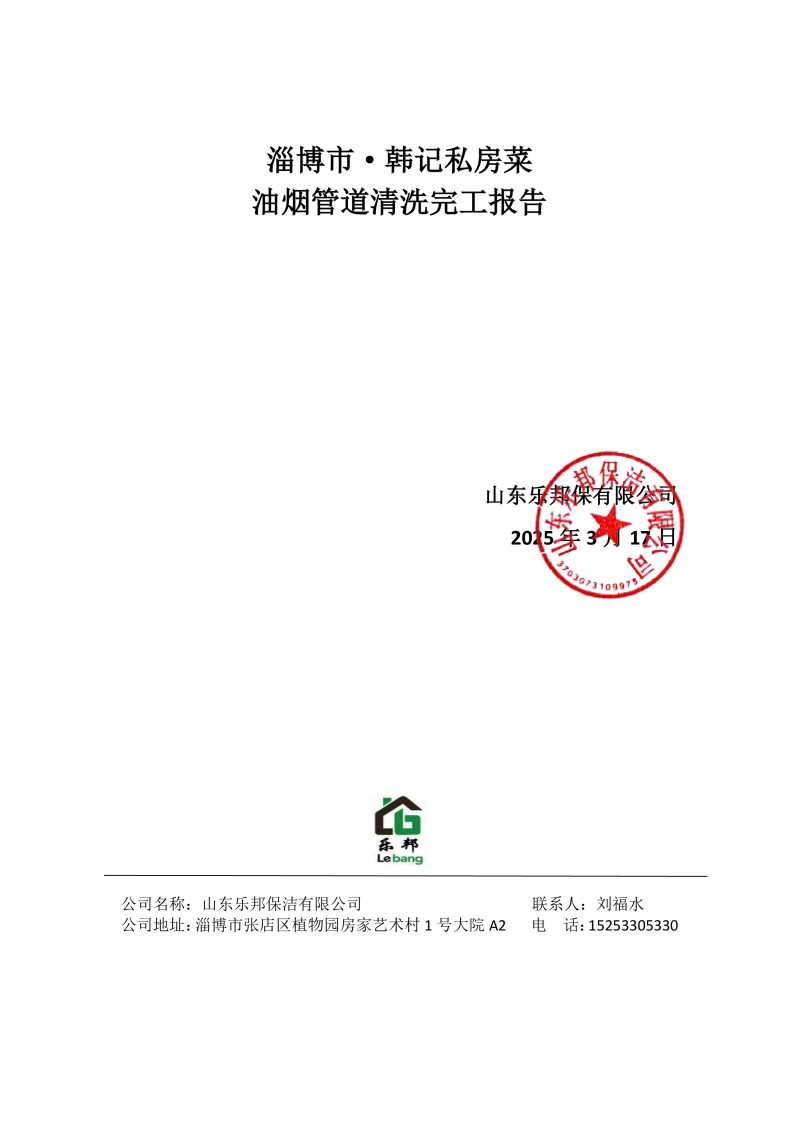淄博市·韓記私房菜清洗報告25.3.17