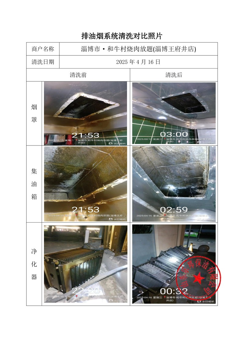 淄博市·和牛村燒肉放題(淄博王府井店)清洗報告25.4.16