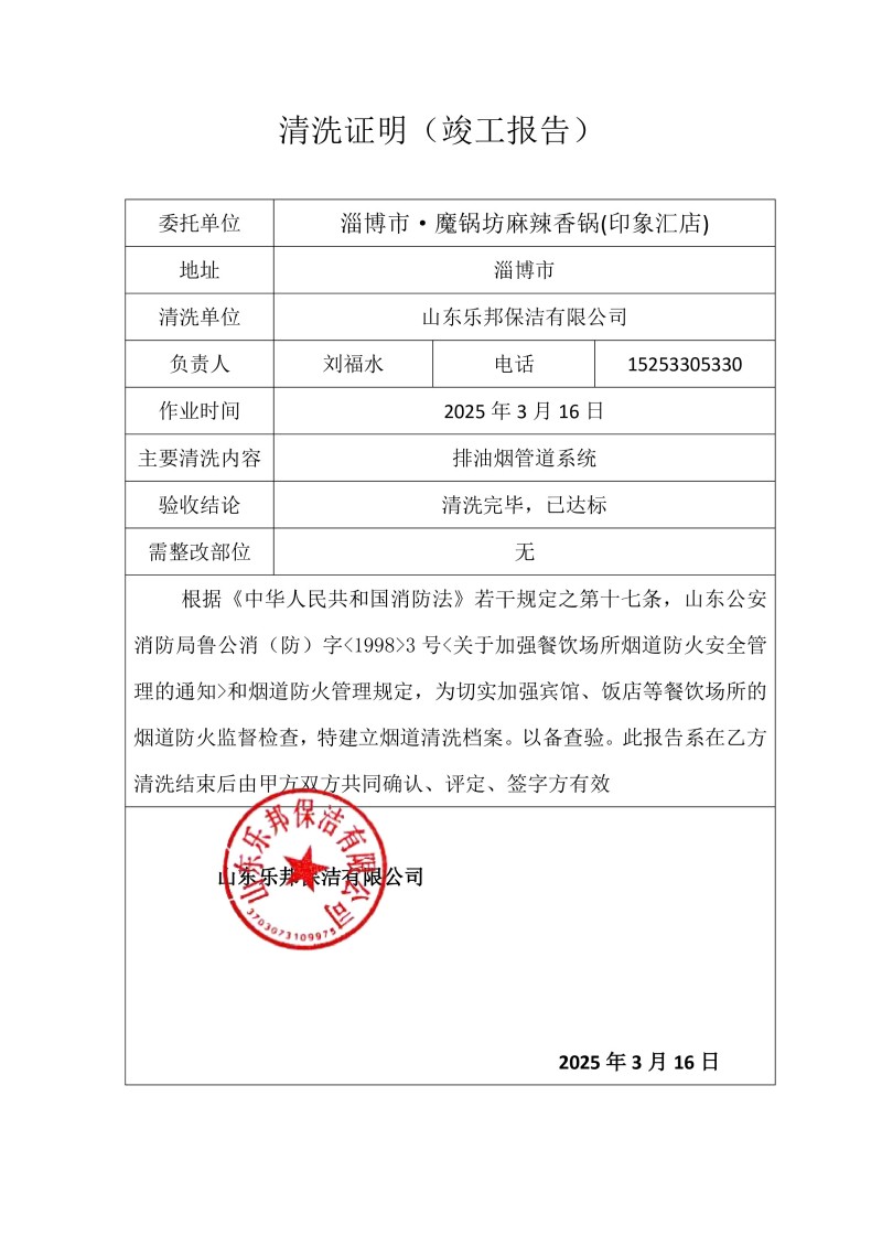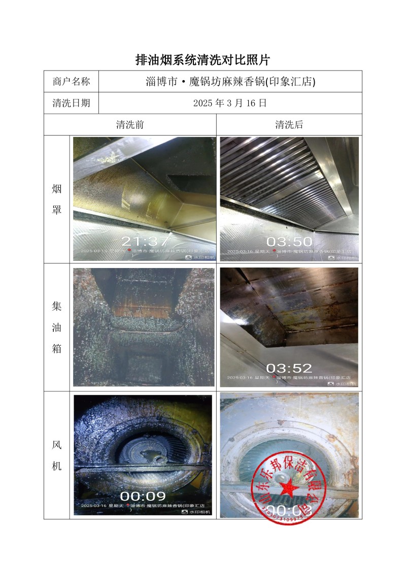 淄博市·魔鍋坊麻辣香鍋(印象匯店)清洗報告25.3.16