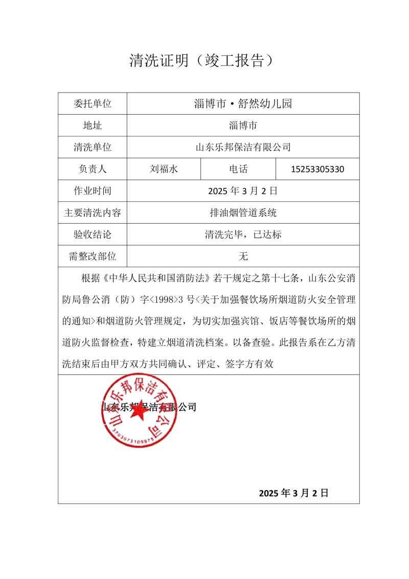 淄博市·蘇滿樓(淮揚菜)清洗報告25.3.28
