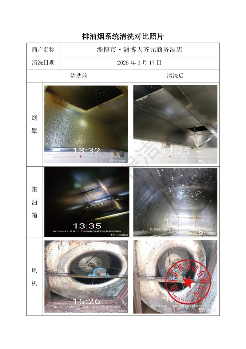 淄博市·淄博天齊元商務酒店清洗報告25.3.17