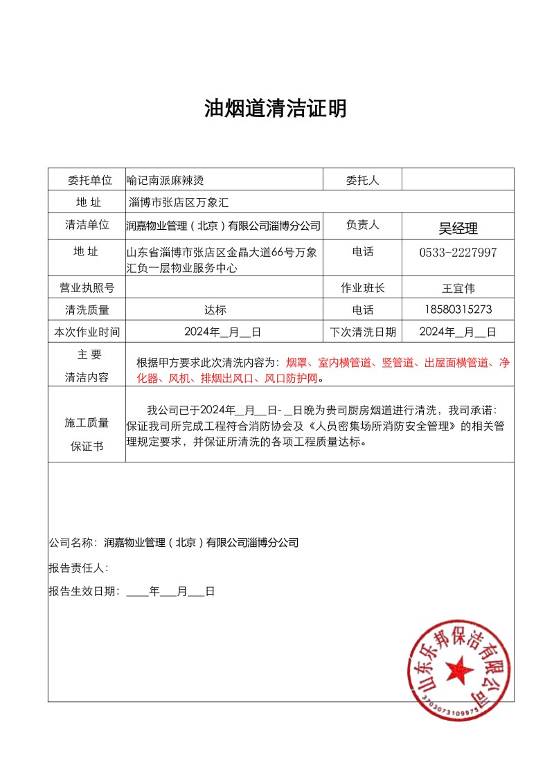 萬象匯喻記南派麻辣燙清洗報告25.3.14