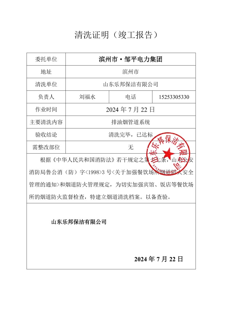 濱州市·鄒平電力集團清洗報告24.7