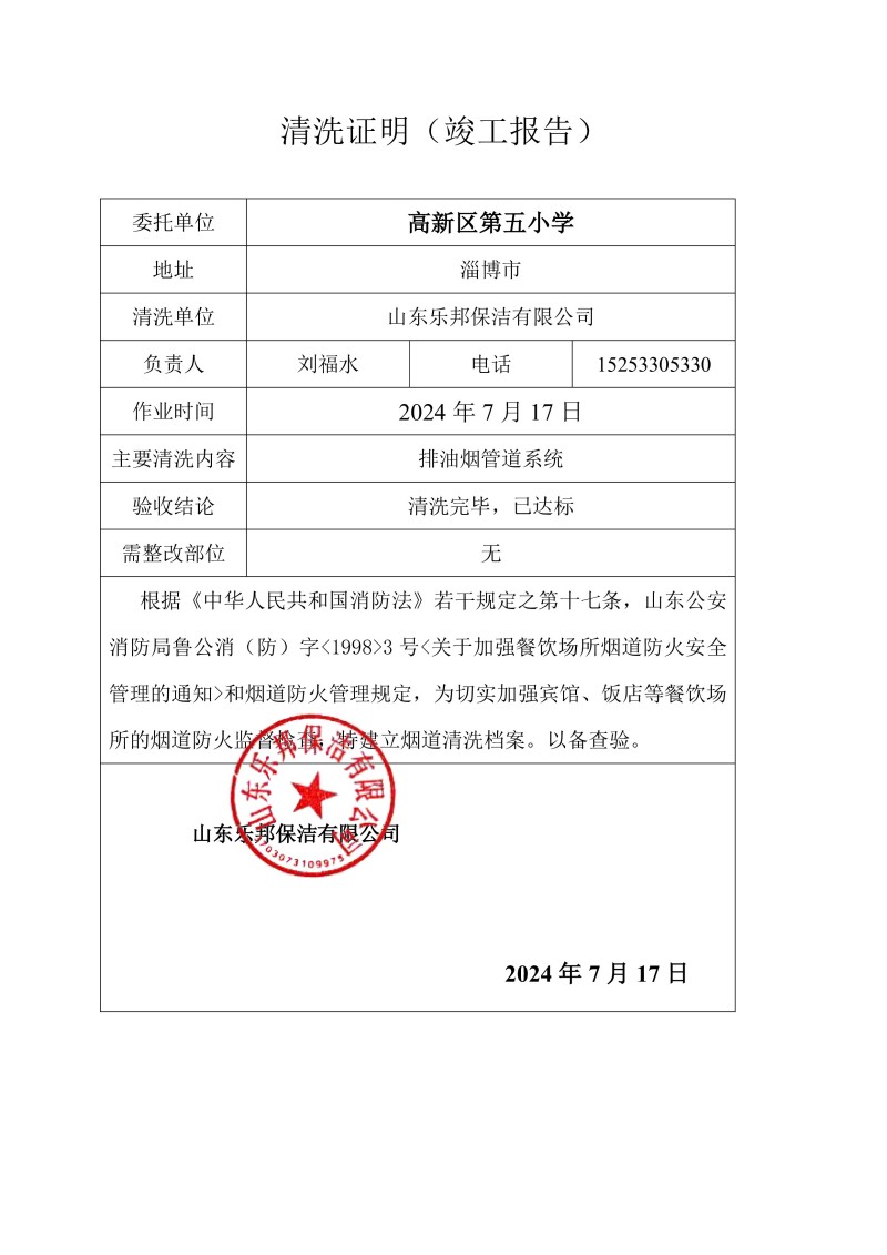 高青縣·山東齊牧齋餐飲管理有限公司清洗報告25.4.30