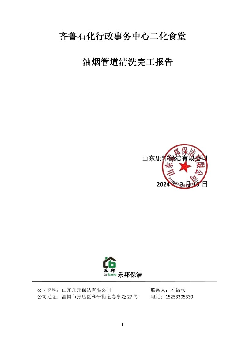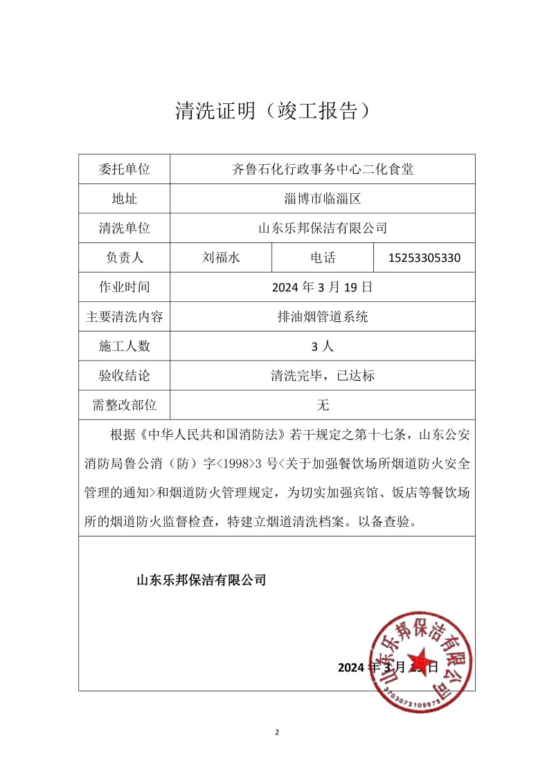 齊魯石化行政事務中心二化食堂清洗報告24.3.19