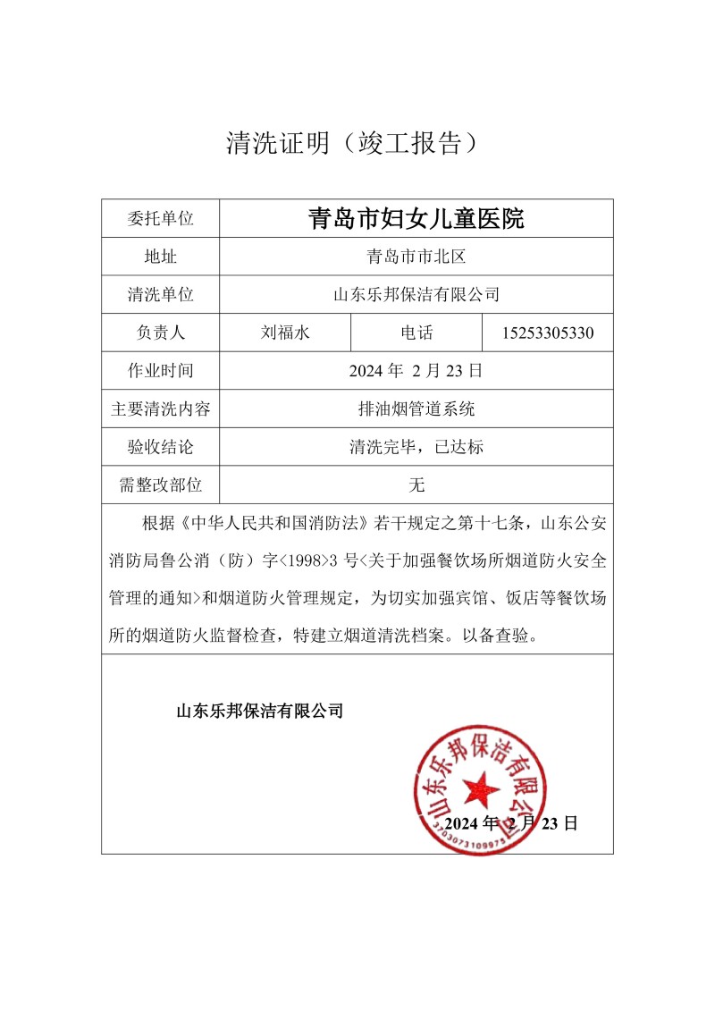 青島婦幼保健院清洗報告23.12.15