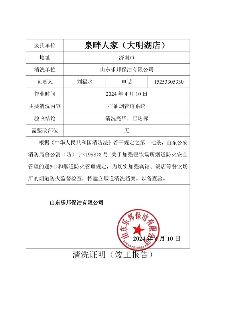 泉畔人家(大明湖店)清洗報告24.4.12