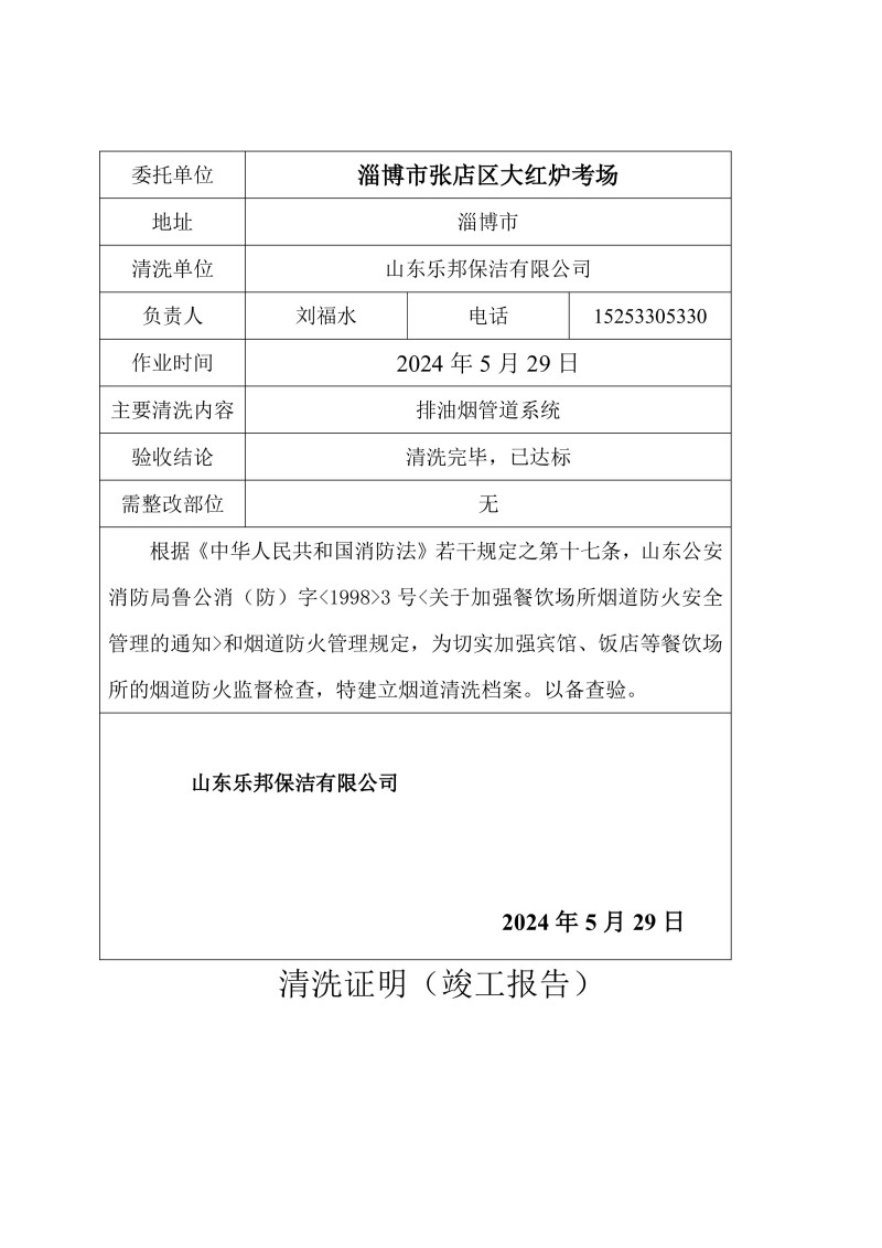 淄博市張店區大紅爐考場清洗報告24.5.29